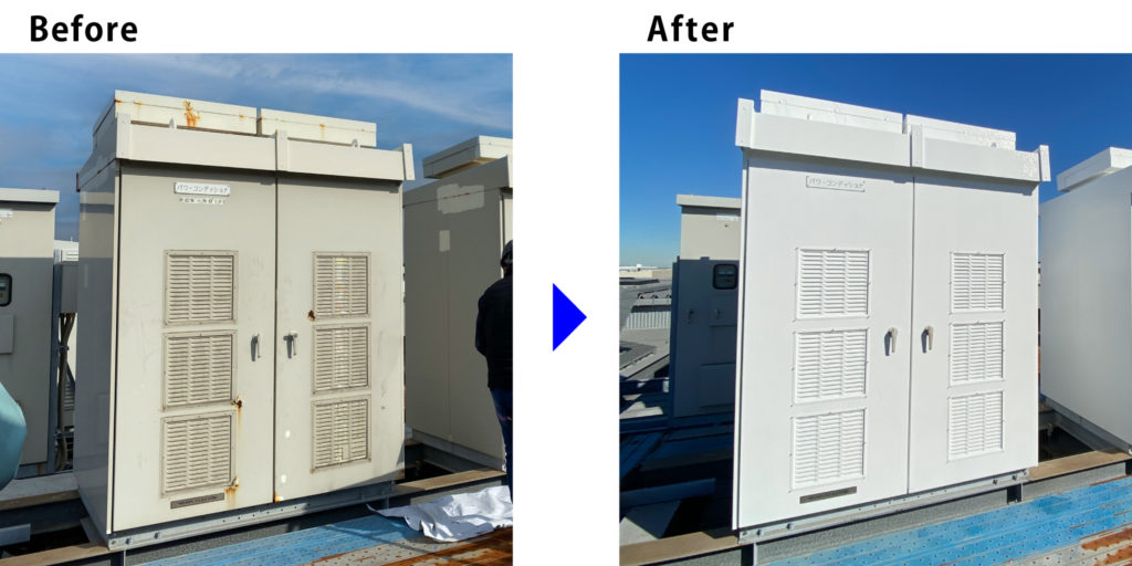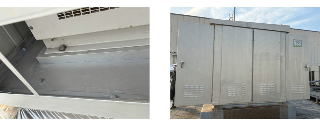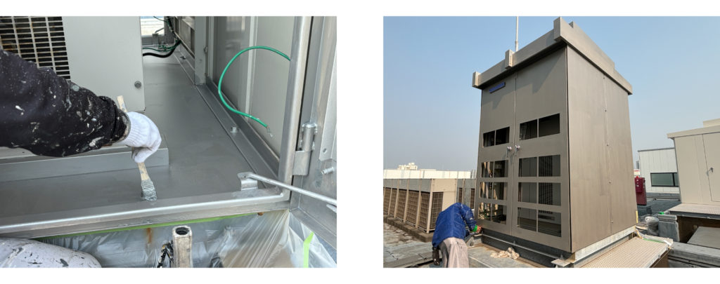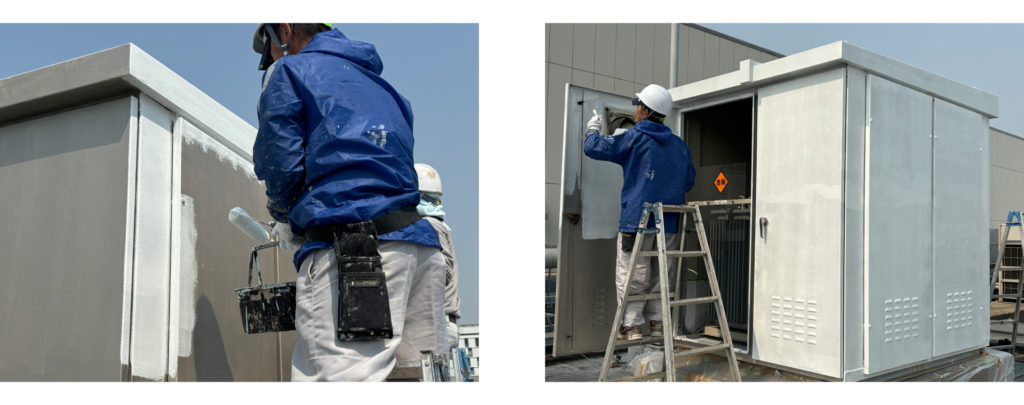 Coolearthを使用したキュービクルの塗り替えは、シリコーンゴム100%の優れた防錆性能により、屋外環境による腐食や劣化を効果的に抑制します。