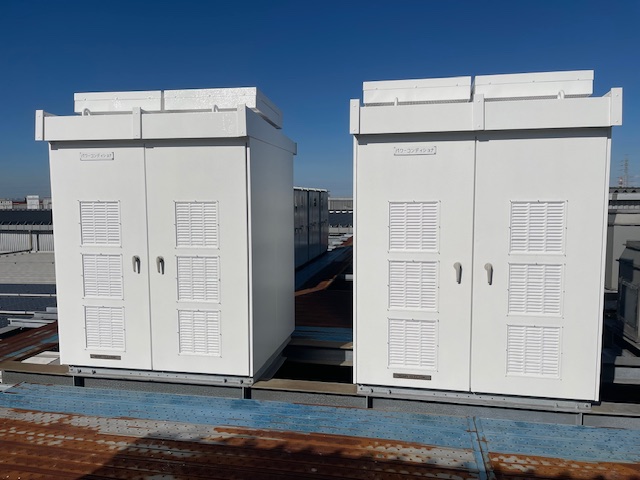 海の近くにある施設の屋上に設置されているこのキュービクルは、直射日光、雨水、そして潮風の影響を強く受けやすい環境下にあります。