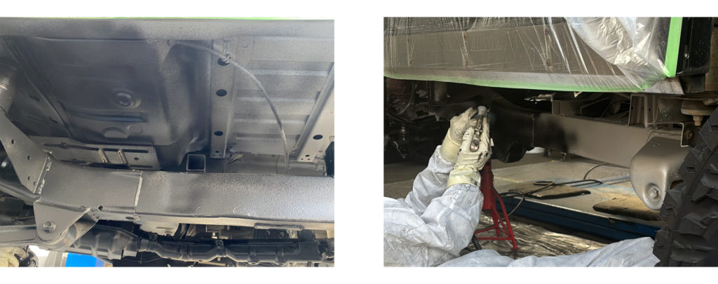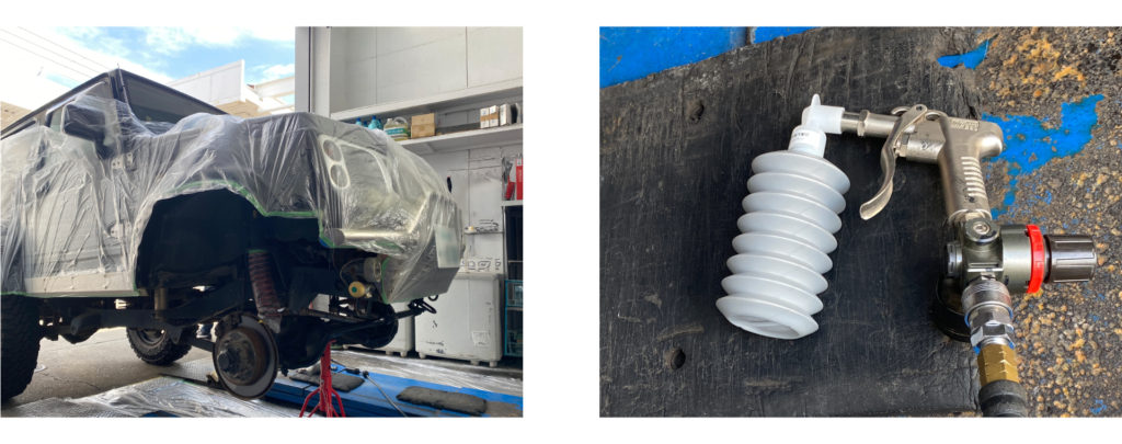 ジムニーの下回りを「ラストロックシステム」を使用し塗装します。