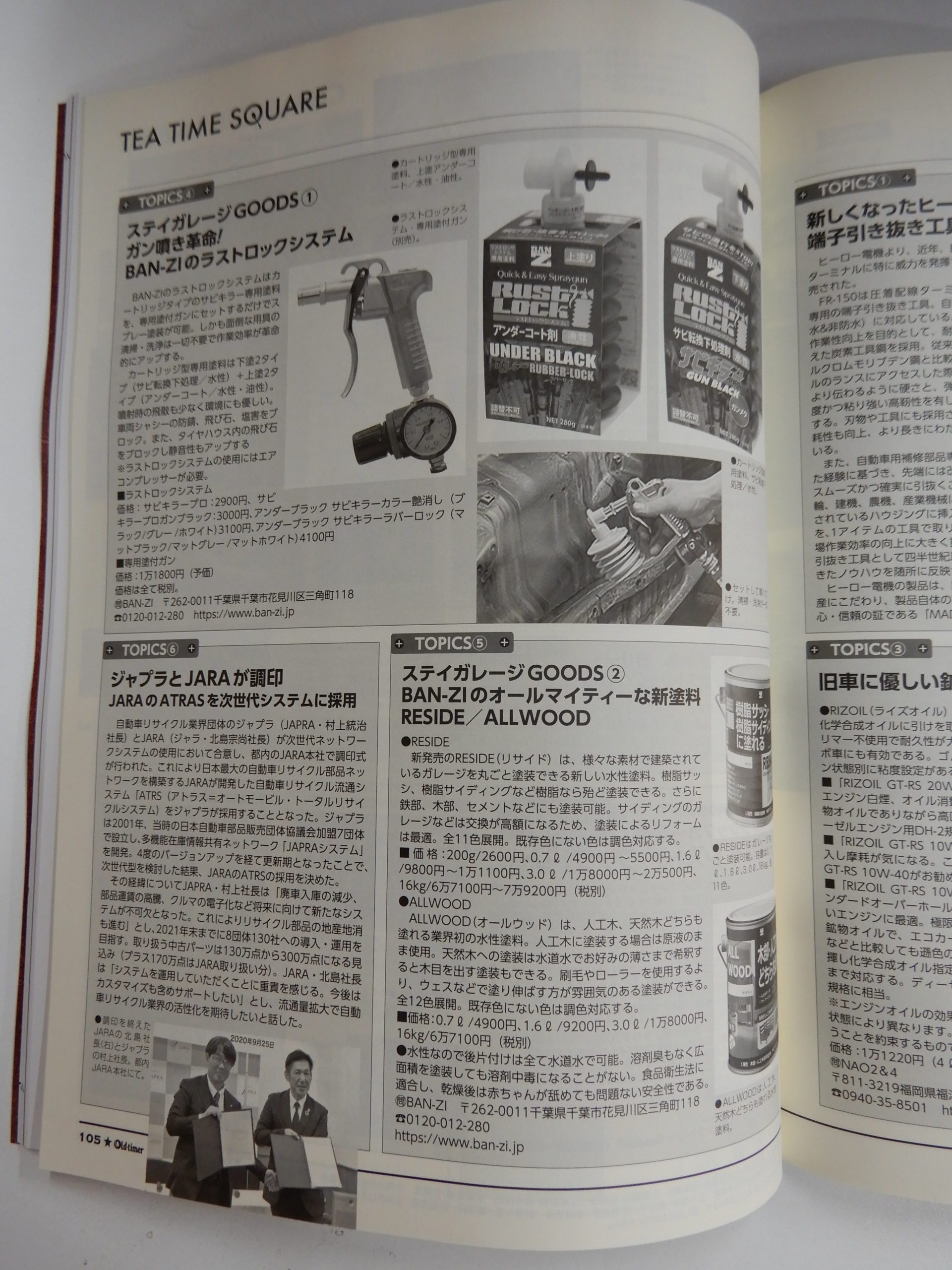 八重洲出版さんの旧車専門誌「オールドタイマー」の「ステイガレージ」シリーズにて弊社商品を掲載して頂きました。   HCC95ヒストリックカークラブ ユダ会長連載の愉快な“泥沼”で弊社商品を使ってもらっています。   2020年12月20開催の昭和レトロカー万博にて弊社新商品の「ラストロックシステム」のデモを行う予定です。   弊社新製品「ラストロックシステム」とガレージの塗装に使える「RESIDE」「ALLWOOD」の記事も掲載して頂きました。