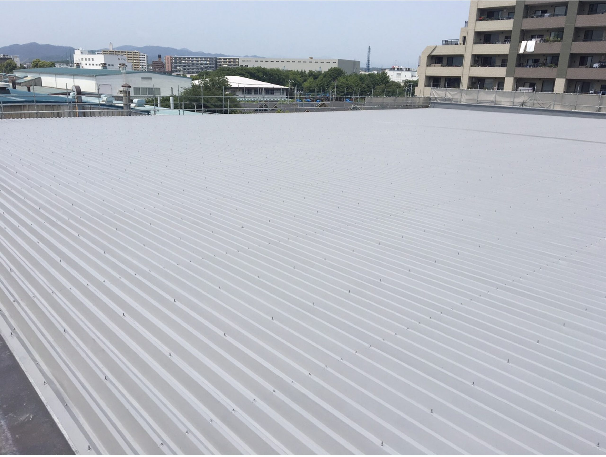 施工後:下塗りにサビキラープロ、上塗りにラバーロックを使用したラバーロックフォーミュラー工法を屋根に全面施工。防錆効果だけでなく、撥水・防音効果も得られ雨漏りもストップ。